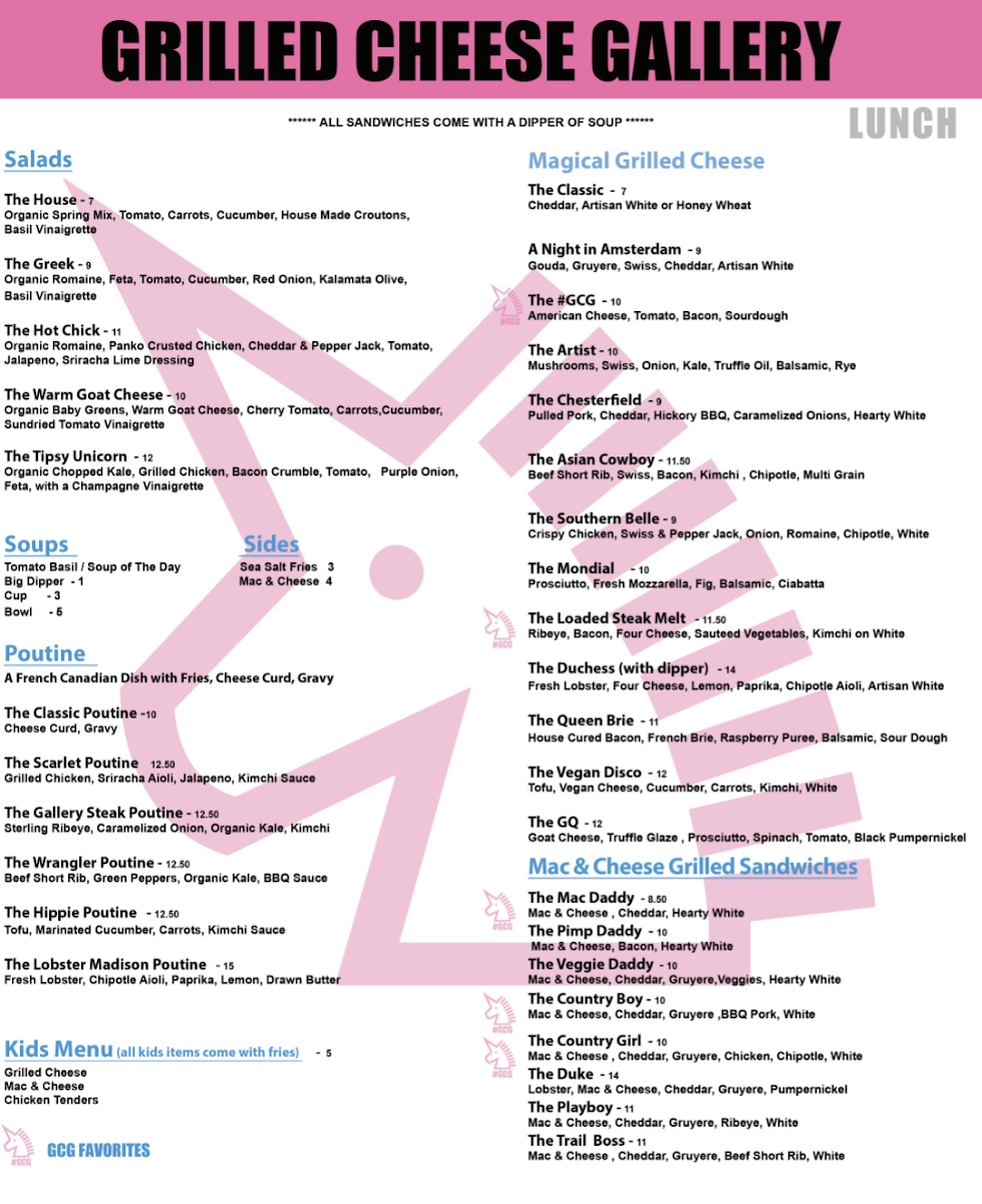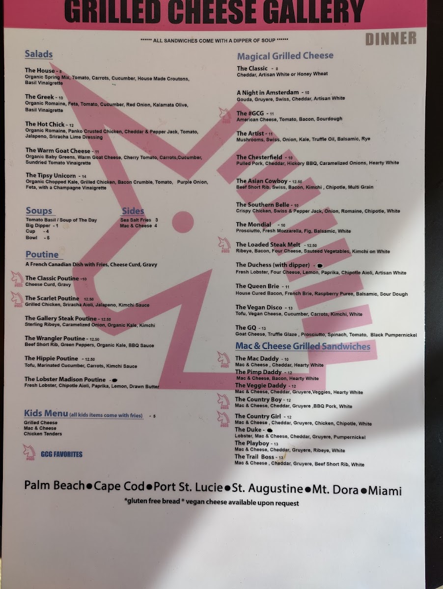 The Grilled Cheese Gallery Provincetown offers a straightforward yet creative menu centered around comforting grilled cheese sandwiches and approachable sides. This casual café-style menu invites guests to enjoy familiar flavors elevated with thoughtful ingredient combinations, perfect for a relaxed lunch or a cozy early dinner.